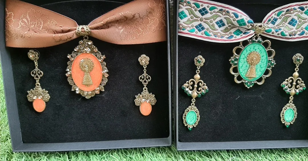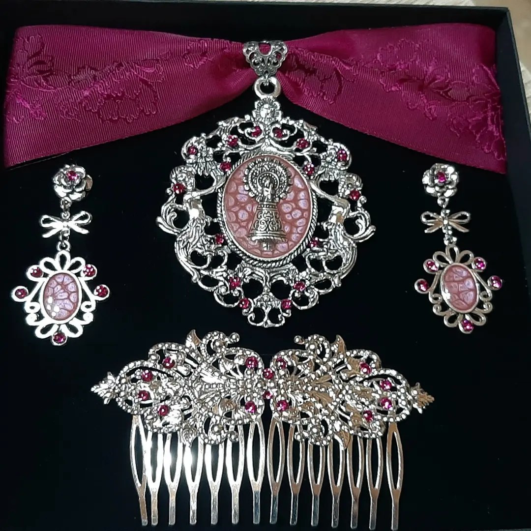 Cada pieza de nuestra artesanía baturra es única y creada con dedicación. Ofrecemos una amplia variedad de productos con diseños exclusivos. Honramos a la Virgen del Pilar con una variedad de camafeos, colgantes, pendientes y peinetas para traje de baturra
